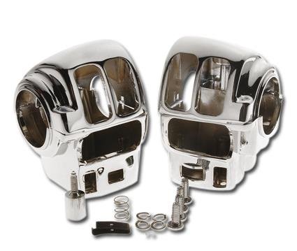 HARLEY DAVIDSON - Manubri - Gusci interruttori comandi cromati per Touring - Riproduzione cromata dei gusci di serie neri. Stampati, cromatura di alto livello. Accettano Interruttori e manicotto gas di serie. Set. - Descrizione: Per Touring con radio e cruise control 1996-2006