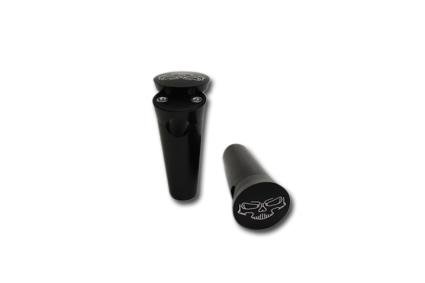 HARLEY DAVIDSON - Manubri - Riser Thriller by Fred Kodlin -Riser Thriller dal design completamente nuovo per abbinarsi a manopole, coperchi e accessori „Thriller“. Superfici lisce cromate, nere e anodizzate oro piatte con tagli teschio Thriller e viti di montaggio nascoste per montarsi al manubrio. I componenti ultra puliti sono disponibili di altezza 2'', 4'' e 6''. - Descrizione: Set riser Thriller da 6'' anodizzato nero