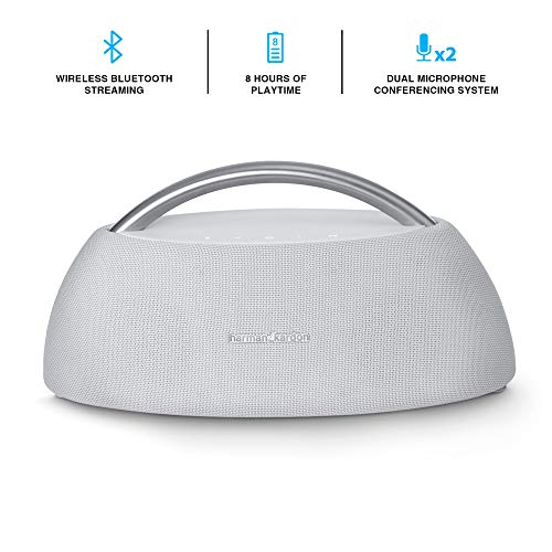 Harman Kardon Go + Play Diffusore Bluetooth Portatile con Batteria Ricaricabile e Doppio Microfono, Bianco