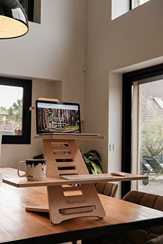 Harmoni Scrivania alta in legno - piano scrivania per laptop regolabile in altezza Scrivania per computer - supporto per rialzo tavolo ufficio home office