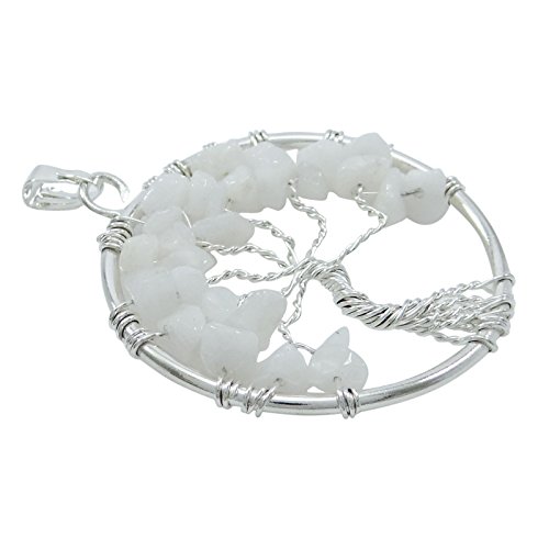 Harmonize Ciondolo Chakra a forma di albero della vita in peridoto, ciondolo di guarigione Reiki, regalo spirituale, pietre preziose, Cristallo, Silver and White (Moonstone), BLACK GIFT POUCH
