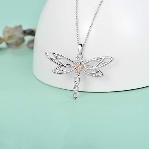 Design della collana della libellula: si combina con nodo celtico, parte in oro rosa come un cuore, incastonata nel mezzo della libellula rende questa collana un segno d'amore