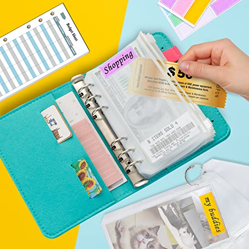 Harphia Planner Budget in Feltro di Lana Blu Menta, Buste per Soldi, Libretto di Risparmio con Copertine, Quaderno Raccoglitore A6, con Kit Accessori Budget 7,4 x 5,71" (Harphia, 170F-Mint)