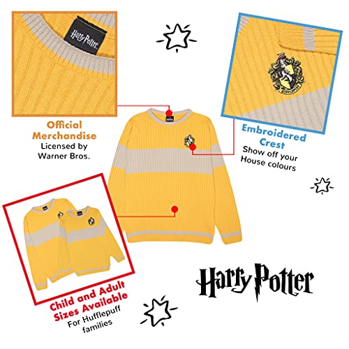 Harry Potter Hufflepuff Quidditch Herren Strickpullover Gelb 4XL | Geschenkidee für Männer, Hogwarts Zauberwelt