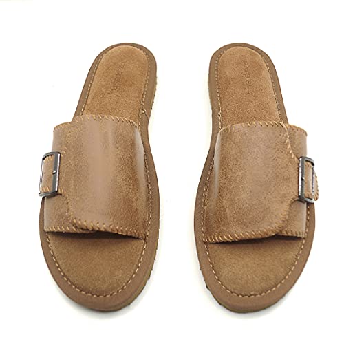 Harssidanzar Sandali a Pantofola da Donna con Punta Aperta Regolabile in Pelle da Donna GL209EU,Cammello,Taglia 38