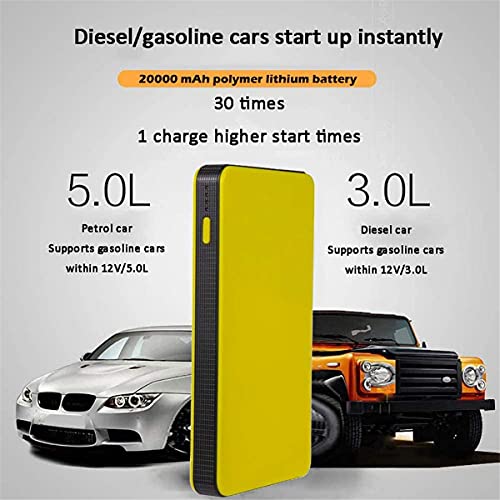 HARTI Avviamento per Auto, Portatile Auto Batteria Booster 12V 20000mAh Power Pack Caricabatterie Esterno con Morsetto, Torcia LED, Cavo, Starter di Emergenza Auto per Automotive, Moto,Giallo