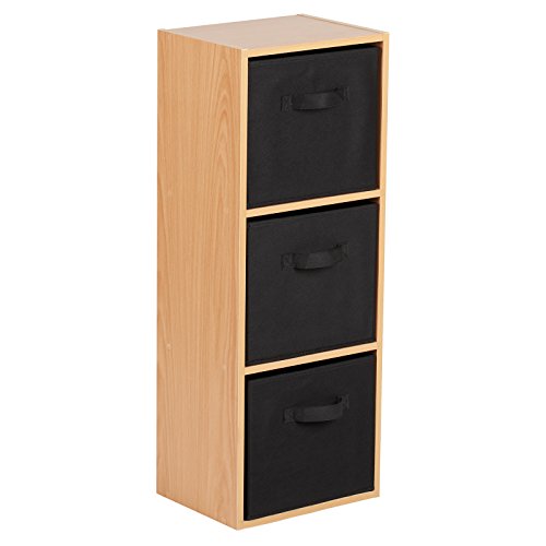 Hartleys, mobile con 3 ripiani, effetto faggio, con contenitori pieghevoli a cubo Black Drawers