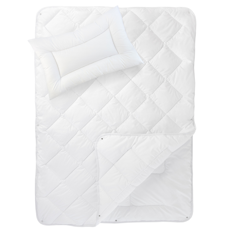 Dimensioni: trapunta 100cm x 135cm, cuscino 40cm x 60cm •