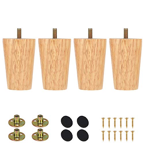 Harupink 4Pezzi Gambe per Mobili Legno, Piedini per Tavolino Divano in Legno Massello, con Viti e Piastra di Montaggio,per Divano, Armadio e Letto,con Viti e Feltrini (H8cm Diametro:53 * 38mm)