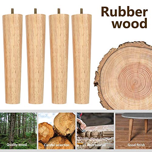 Harupink 4Pezzi Gambe per Mobili Legno, Piedini per Tavolino Divano in Legno Massello, con Viti e Piastra di Montaggio,per Divano, Armadio e Letto,con Viti e Feltrini (H15cm Diametro:53 * 38mm)