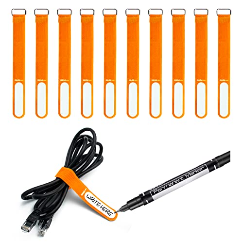 HASA zone 10 Pezzi Fascette Cavi con Etichette, Fascette Riutilizzabili con Fibbia in Acciaio Inossidabile, Fascette per Cavi per Cable Management e Fissaggio e Stoccaggio, Arancione, 20CM