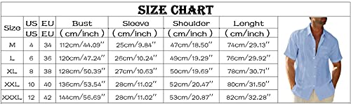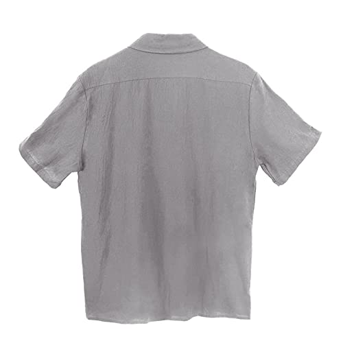 Hasagimol Camicia da uomo a maniche corte, in lino, da uomo, a maniche corte, vestibilità regolare, con bottoni, estiva, per il tempo libero, taglie forti, grigio, M