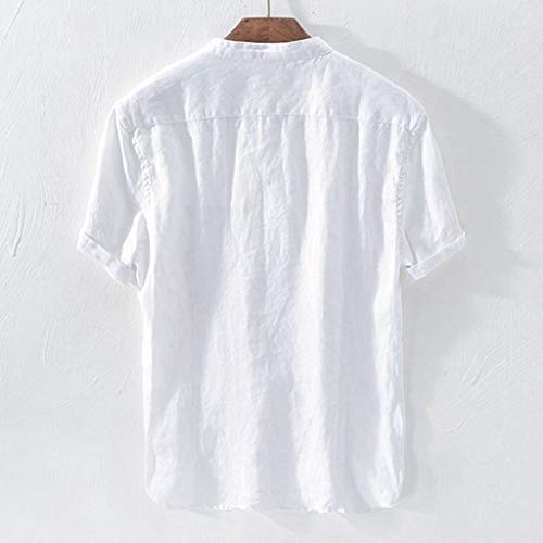 Hasagimol Camicia da uomo a maniche corte, senza stiratura, in lino, a maniche corte, per il tempo libero, da spiaggia, leggera, traspirante, bianco, XXXXXL