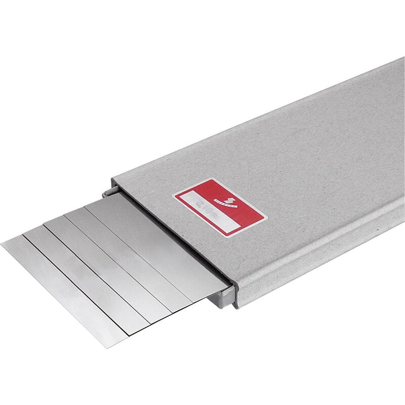 Nastro in acciaio con funzione di spessimetro rigido, laminato a freddo, con elevata precisione di planarità. Lo spessore della pellicola è marcato in modo indelebile. Contenuti in scatole robuste. Inossidabile − acciaio legato resistente alla ruggine e agli acidi, materiale n. art. 1.4310 (o 1.4301 spessore 0,02 e 0,05mm), laminato a freddo, rigido, superficie lucida. Uso: Allestimento di utensili, regolazione di gruppi, compensazione di tolleranze, supporto per dispositivi, allineamento di attrezzature, allestimento di stampi, regolazione del gioco di cuscinetti, adattamento di gruppi, regolazione delle lame di forbici, allineamento di utensili, ecc. Fornitura: 1 Confezione con 5 fogli. Dati tecnici Lunghezza pellicole mm 500 Numero fogli 5 Larghezza pellicole mm 100 Attributo del nome del prodotto inossidabile Materiale Acciaio legato, INOX Tipo di prodotto Foglio Limite di errore, µm ±3 Spessore, mm 0,05 Materiale acciaio legato resistente alla ruggine e agli acidi