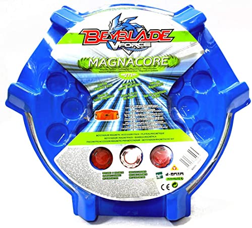 Il pacchetto magnetico Beystadium "Magnacore" lascia che le forze magnetiche agiscano sul tuo Magnacore Beyblade: posizionato sotto la Dragon Arena il pacchetto magnetico Beystadium assicura una porzione di azione. Le tue competizioni diventano ancora imprevedibili. I sei magneti possono essere posizionati a piacimento sul sottoscocca - la tensione varia garantita