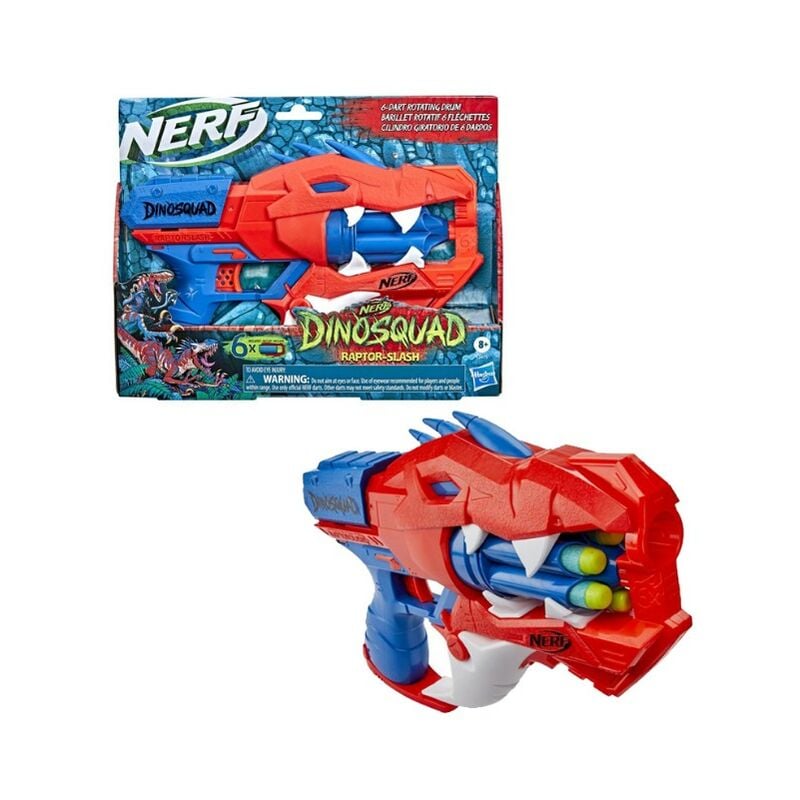 Nerf Raptor Slash Hasbro blaster lancia-dardi puoi scatenare un feroce attacco con il suo fantastico design a tema dinosauro che si ispira al velociraptor. Nerf Raptor Slash Hasbro, dal fantastico design dinosauro, presenta un tamburo rotante da 6 dardi in modo da poter lanciare 6 dardi di fila. Il blaster è progettato in modo che i dardi vengano lanciati dalla bocca piena di denti del dinosauro. Lancia 1 dardo alla volta o lancia 6 dardi velocemente in una raffica di colpi. Carica il tamburo, sposta l'impugnatura di armamento avanti e indietro e premi il grilletto per lanciare 1 dardo. Scatena i tuoi dardi in una raffica di colpi: tieni premuto il grilletto e continua a muovere l'impugnatura di armamento avanti e indietro per lanciare 6 dardi velocemente. Include 6 dardi originali Nerf Elite in gommapiuma che sono ideali per avventure in casa e all'aperto. Caratteristiche: Età consigliata: da 8 anni Contenuto della confezione: 1 blaster e 6 dardi. Si consiglia l'utilizzo di occhiali