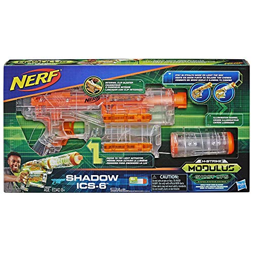 Hasbro Nerff N-Strike Modulus Ops Shadow ICS-6 - Blaster Giocattolo con modalità Mimetica o Luminosa, Multicolore