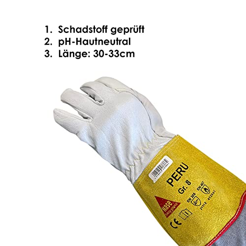 Hase Guanti da saldatore Peru secondo EN388/EN407, il nuovo guanto da saldatore in pelle di capra e il manicotto in pelle e elastico nella parte superiore per una perfetta vestibilità (5, 11)