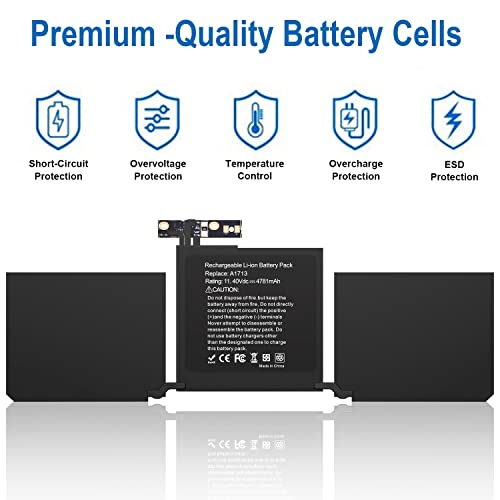 HASESS A1708 A1713 Batteria di ricambio per MacBook Pro 13 pollici A1708 A1713 Late 2016 Mid 2017 Version EMC 3164 2978 (11.4V 54.5Wh) - 12 Mesi di Garanzia