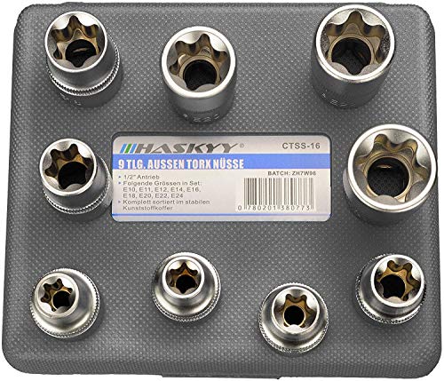 HASKYY 9 pezzi di set di bussole profilo E (Torx), inserti chiave a bussola E10-E24