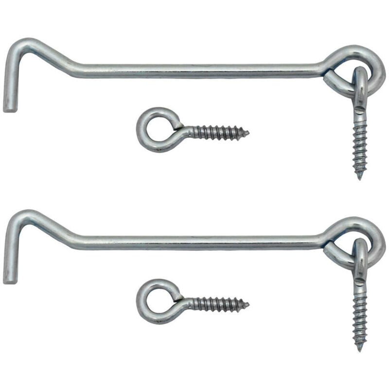Hasp 100 mm. (Borsa 2 set) - Finitura zincata - Ogni set è composto da un gancio da 100 mm. + 2 occhielli chiusi - Contenuto: 2 set di cerniere. - Ideale per chiudere porte, finestre, cassapanche, scatole, chiavistelli scorrevoli, ecc.