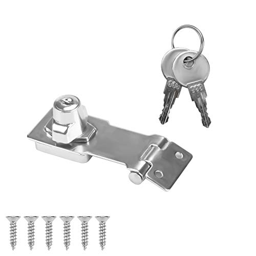 Hasp con chiave 80 mm/3 in acciaio inox con serratura e chiave per porte, garage, porta, scatola in legno, armadietti, gabbia per animali domestici (2 pezzi)