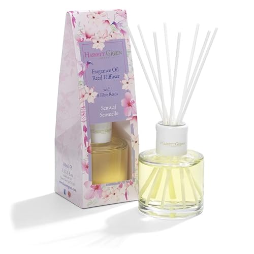 Hassett Green London Olio Fragranza Diffusore a Lamella - 100ml Bottiglia di Vetro Con 8 Fibra Bastoncini - Sensuale Sensuelle