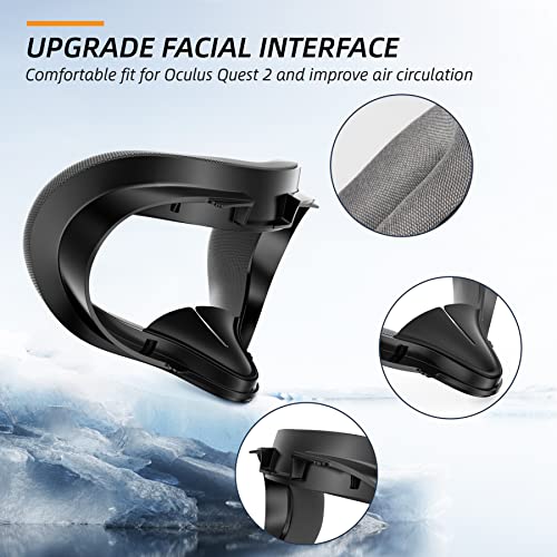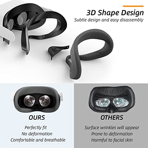 Hastraith 8-in-1 Accessorio per Oculus/Meta Quest 2 con staffa di interfaccia facciale di ricambio e copertura facciale in cotone memory traspirante e blocco della luce, copriobiettivo e nasello, Nero