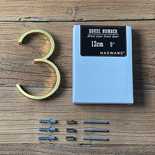 HASWARE Targa con numero civico galleggiante 5 pollici (12 cm) Moderna porta numeri segnaletica targa Numeri indirizzo di casa (oro, 3)