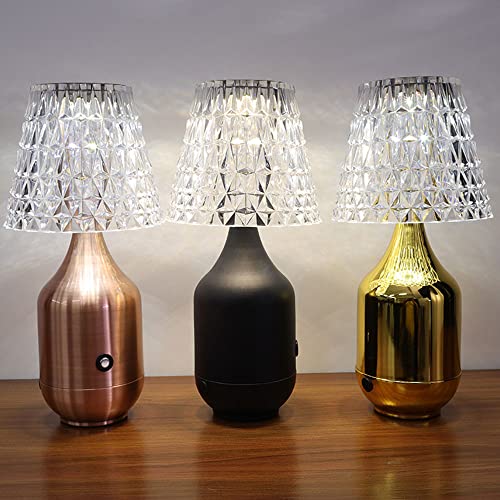 HASWEX Lampada da scrivania Moderna a 3 Colori dimmerabile Senza Fili Lampada da scrivania a LED Ricaricabile in Cristallo Lampada da Comodino Touch Luce da Tavolo Creativa di Lusso per Bar