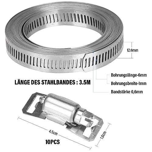 HATANSE 3.5m Fascette Metalliche Stringitubo Aacciaio e 10 Morsetti Fascette Stringitubo Regolabile in Acciaio Inox 304 Morsetto Collare per Tubi Per Gas, Tubi Dell'acqua, Autoveicoli e Industriale