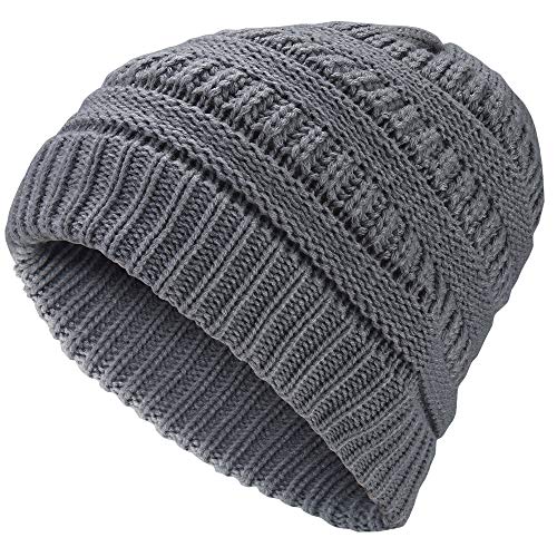 Hatstar Berretto invernale da donna con foro per coda di cavallo o treccia, morbido e caldo, grigio scuro, M
