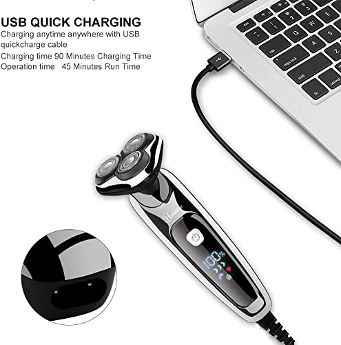 HATTEKER Rasoio Elettrico Rasoio Da Uomo Rasoio Asciutto E Bagnato Trimmer Elettrico Per Barba Trimmer Di Precisione Rasoio Rotante Uomo Impermeabile 3 IN 1