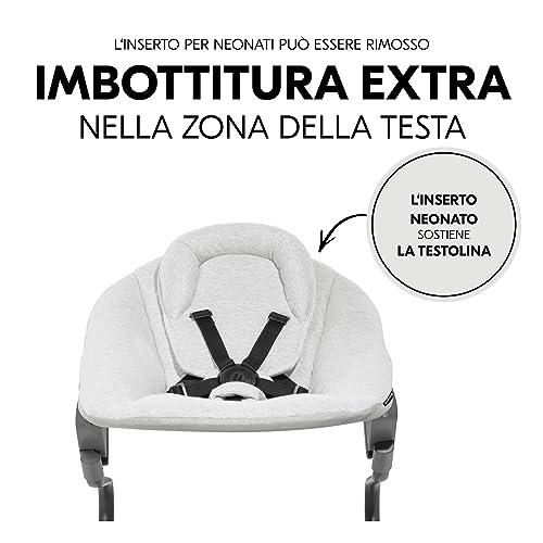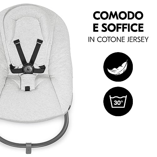 Hauck Alpha Bouncer Premium Sdraietta Neonato - Per Seggiolone Pappa Alpha e Beta dalla Nascita a 9 Mesi - Dondolo Neonato 2in1 in Cotone, Cintura a 5 Punti e Schienale Regolabile - Grigio Chiaro