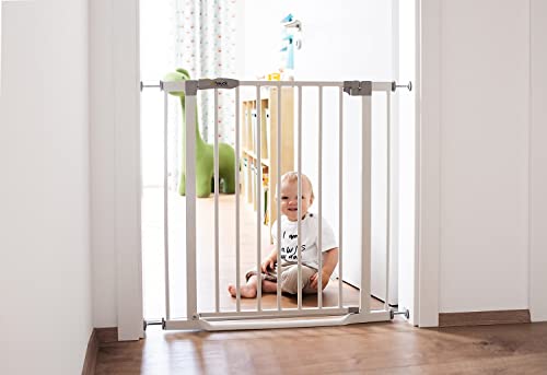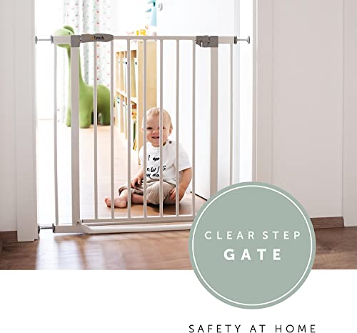 Hauck Cancelletto di Sicurezza per Bambini Clear Step - Cancelletto per Bambini con Base Ultra Piatta da 75 a 80 cm - Fissaggio a Pressione, Estensibile - Per Porte e Scale Interne - Metallo Bianco