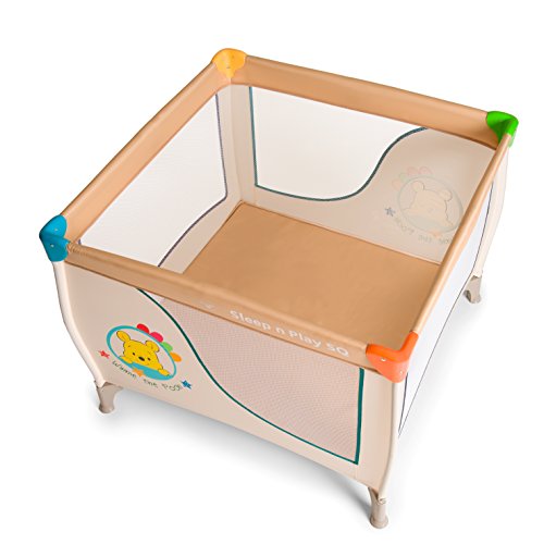 Hauck Disney Box per Bambini Sleep N Play SQ, Quadrato, 90 x 90 cm, dalla Nascita a 15 kg, Adatto a Gemelli, Incl. Borsa di Trasporto, Pieghevole Compatto, Pooh, Beige