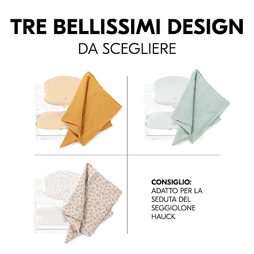 SET TELI MUSSOLA: le mussole sono disponibili in un set di 3 colori e design moderni, che possono essere combinati in modo ottimale con i cuscini per il seggiolone di Hauck