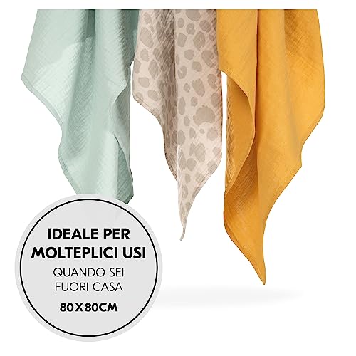 TELI 4IN1: le mussole neonato 80x80 cm e forniscono flessibilità nella vita quotidiana con il bimbo, perché sono adatte come panno per quando finisce di mangiare, per l'allattamento o come copertina