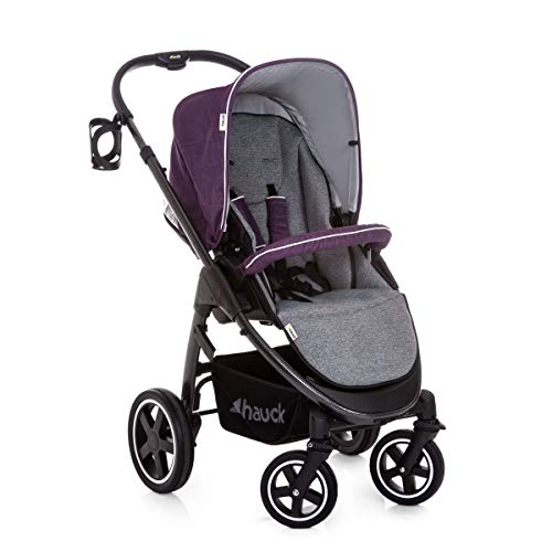 Hauck Passeggino Combinato Soul Plus Trio Set Navicella con Materasso, Ovetto, Seduta Reversibile, Altezza Regolabile, 25 kg Portata, Porta Bevande, Pieghevole Compatto, Lila Berry