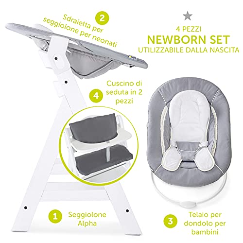 Hauck Seggiolone Alpha Plus Newborn - Seggiolone Legno Evolutivo dalla Nascita, con Sdraietta Dondolo Neonati e Cuscino - (Bianco)