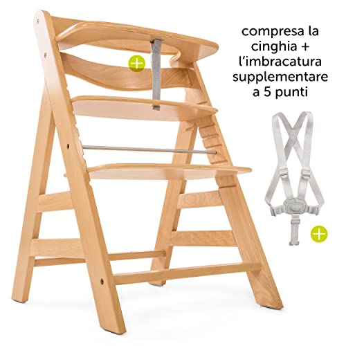 Hauck Seggiolone Alpha Plus - Seggiolone Pappa in Legno Evolutivo con Imbracatura a 5 punti, Barra di Protezione e Cuscino per la Seduta -