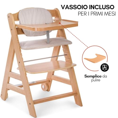 CRESCE CON IL BAMBINO: Nei primi mesi si usa la sdraietta neonato dondolo. In seguito nel seggiolone legno evolutivo. Cresce con il tuo bambino per tutta la sua vita e può essere usato anche dai genitori fino a 90 kg.