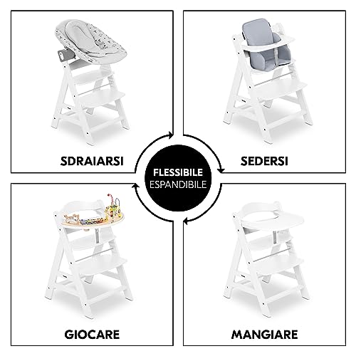 Hauck Seggiolone Pappa in Legno Alpha+ (Legno certificato FSC®) - Resistente al Ribaltamento - Seggiolone Evolutivo da 6 mesi fino a 90 kg - Bianco