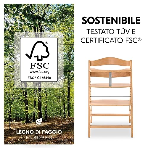 Hauck Seggiolone Pappa in Legno Alpha+ (Legno certificato FSC®) - Resistente al Ribaltamento - Seggiolone Evolutivo da 6 mesi fino a 90 kg - Marrone Naturale