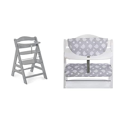 Hauck Seggiolone Pappa in Legno Alpha+ - Seggiolone Evolutivo - Resistente al Ribaltamento, Grigio & Cuscino Seggiolone Highchair Pad Deluxe - Cuscino da Seduta
