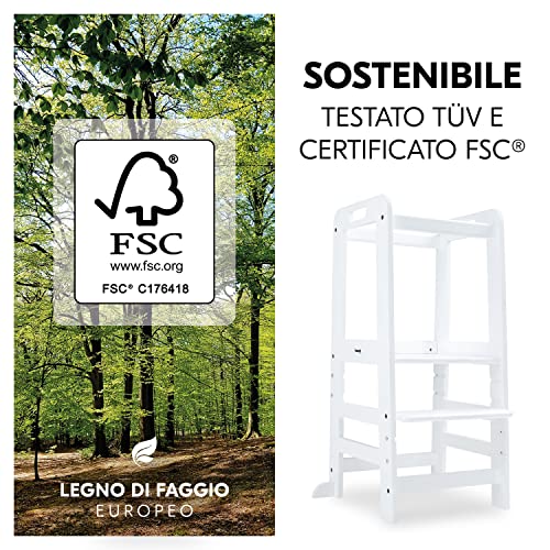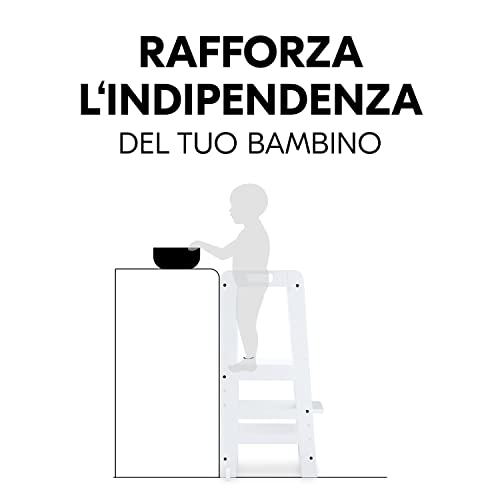 TORRE DI APPRENDIMENTO MONTESSORIANA: grazie alla posizione rialzata della torre montessoriana bambini, il bimbo svolgerà diverse attività insieme alla famiglia in cucina, a tavola o in bagno