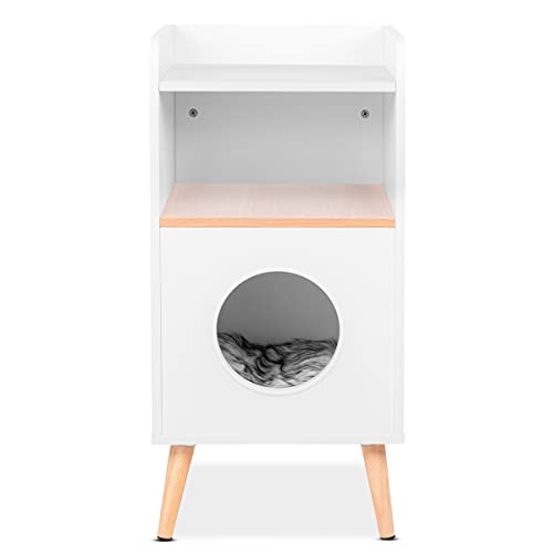 Mc HAUS Table Cat Bed - Tavolino per gatti, casetta per gatti, comodino, 39x38x81cm, bianco