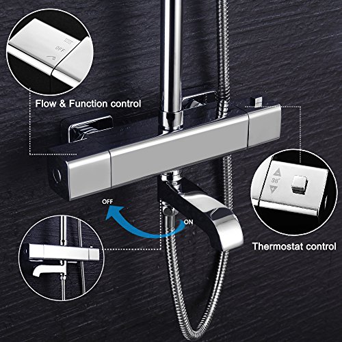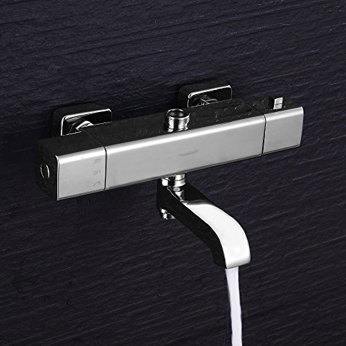 Hausbath, miscelatore termostatico cromato per doccia, miscelatore termostatico moderno, miscelatore per doccia anti scottatura, miscelatore acqua calda e fredda, controllo costante della temperatura per il bagno
