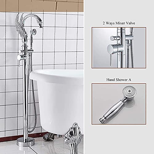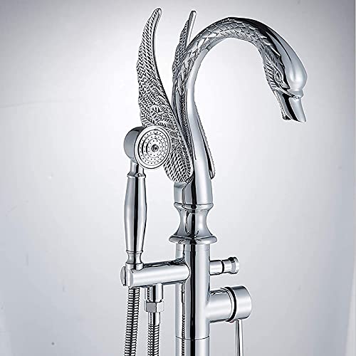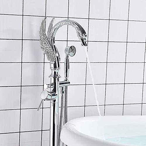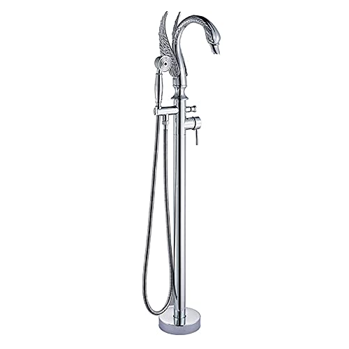 HAUSELIEBE Indipendente Rubinetto per Vasca con Soffione a Mano e Bocca Girevole 360°, Montato a Pavimento a Forma di Cigno Rubinetto per Vasca Freestanding,Cromo