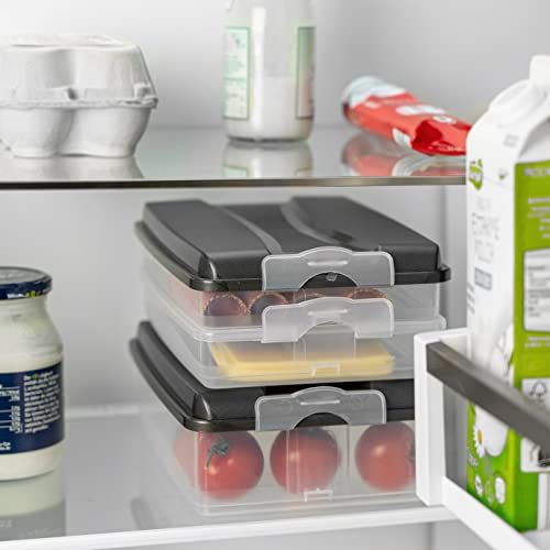 ABBASTANZA SPAZIO PER TUTTO: Le scatole per alimenti con coperchio sono così grandi che puoi trasferire completamente quantità commerciali di salumi e formaggi. Questo organizer per frigorifero garantisce sempre ordine. Contenitori impilabili versatili!